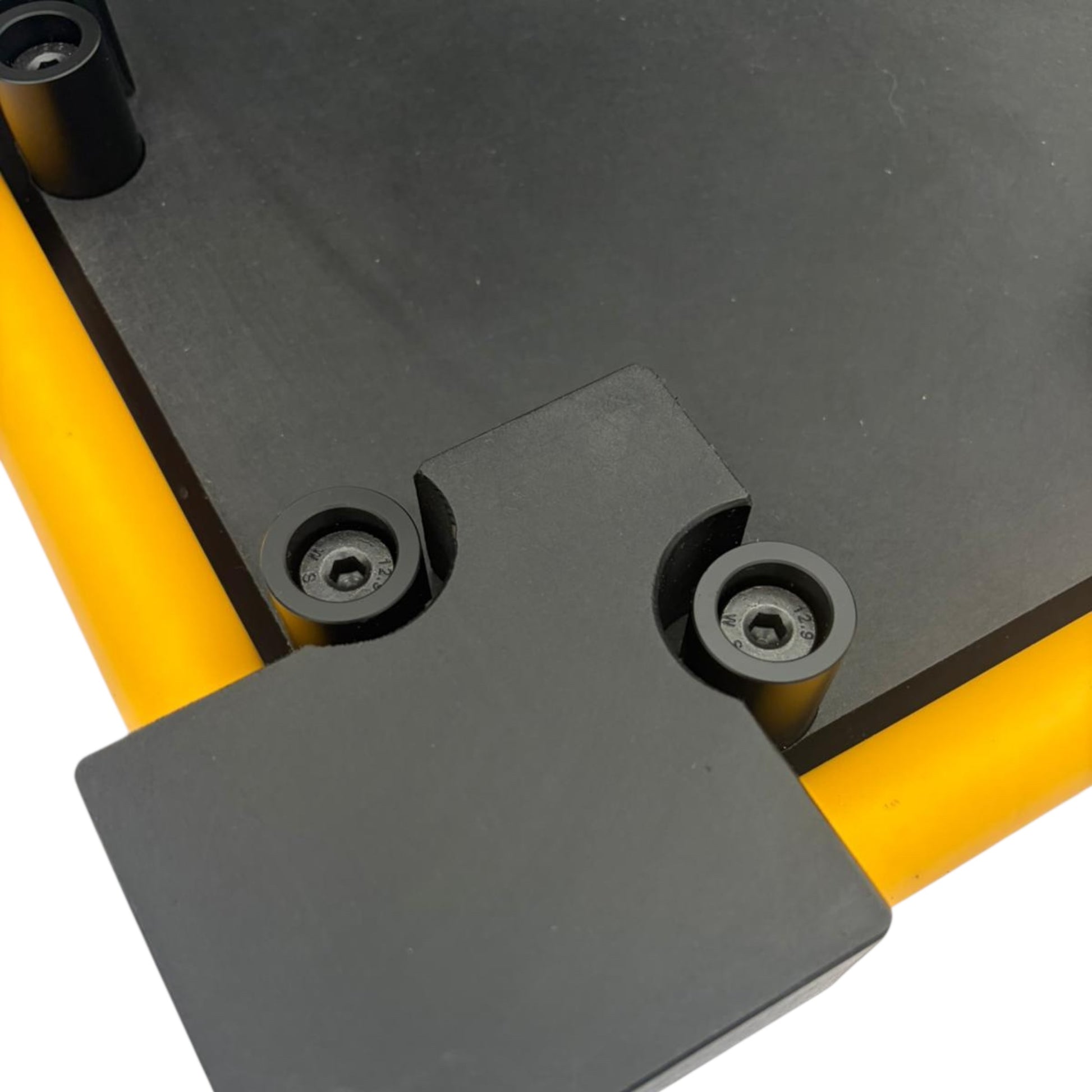 A half-round profile is machined into the UHMWPE base, allowing the rollers to sit recessed into the platform while preventing contact between the roller surface and the plate.